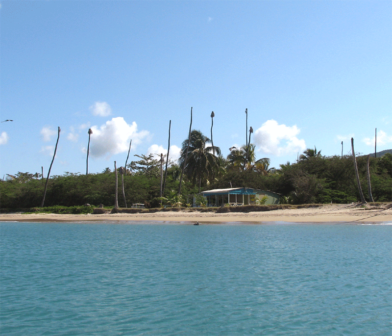 Délután visszamentünk a hajóra és átmotoroztunk az iker-szigetre, Nevis-re, hol a Double Deuce nevű krimóval szemben, horgonyra álltunk. Az angol tulaj és benszülött felesége bűbájosak voltak, előitalként egy Bullshit nevű koktélt kaptunk (alapja rum , olyan mint a lórugás) mindenféle tengeri izéket vacsoráztunk, majd kifeküdtünk a parti homokra és bámultuk a csillagokat, a háttérben szóló karibi zene mellett. |