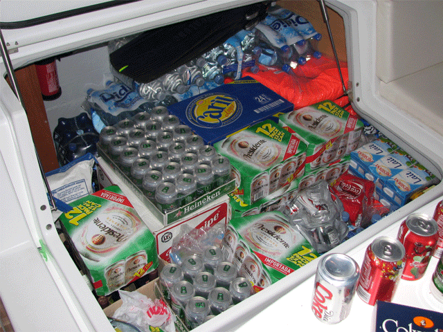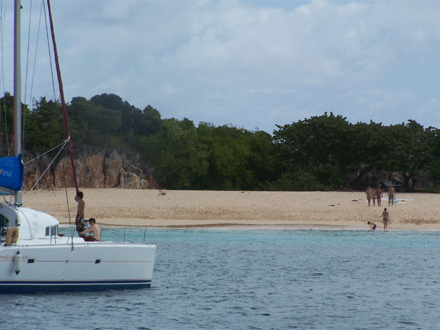 Két héttel korábban érkeztem a karibra és ugyanezzel a hajóval (Lagoon 440, neve Hestia) egyszer már megtettük az utat, körbe a Leeward (Szélalatti) szigeteken. Hárman maradtunk, a többiek tegnap haza- repültek. A charter-cég emberei nekiálltak kitakarítani a hajót, új ágyneműt húztak, ellenőrizték a motorokat és kijavították a klotyó lefolyót, mi meg Tibivel és Zsoltival elmentünk a szupermarketbe, felfrissíteni a készleteket. 5 hatalmas bevásárlókocsit pakoltunk tele és Joe, a helyi kapcsolatunk odafuvarozta a holmit a hajóra. Csak megjegyzem, mintegy 2000 USA-dollárt bokáztunk el.