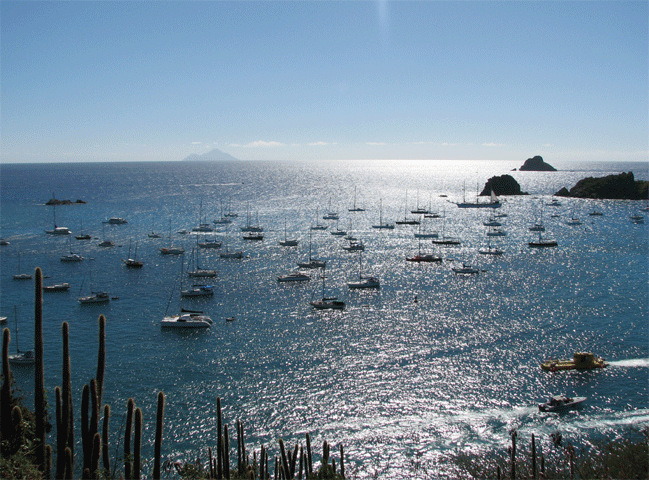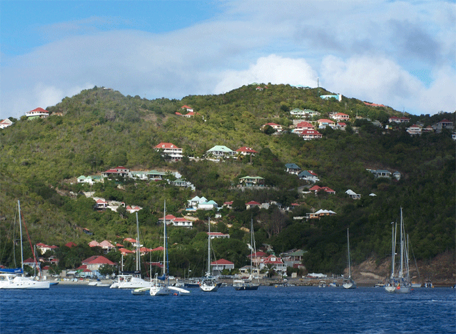 Relatíve korán indultunk, ez azt jelenti, hogy reggel csak kicsit tökölődtünk. Tintamareig széllel szemben, motorral jöttünk, majd bő negyed széllel, délkeleti irányban egészen St. Barts közepéig jutottunk. Gustavia, St. Barts legnagyobb városa, külső kikötőjében, mély vízben dobtunk horgonyt.