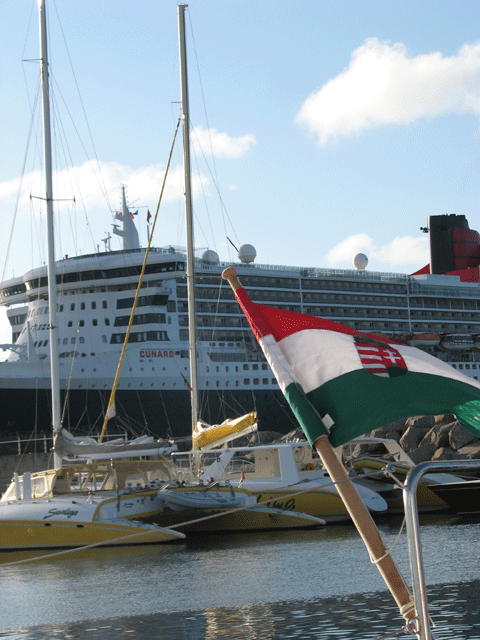 Reggel arra ébredtünk, hogy mellénk kötött a Queen Mary 2 :-) |