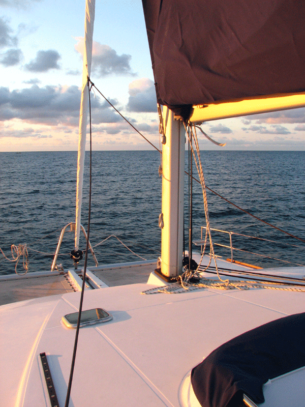 Hajnali 6-kor indultunk Antiqua felé, sajnos teljes ellenszélben. A napfelkeltét Nevis hegyei felett már a hajóról élveztük. Menetközben bennszülött halászok mellett haladtunk el, akik vadul integettek, hogy nehogy felszedjük a hajóval a hálójukat. Kilépve a sziget árnyékéból erősen hullámzott. A jobb oldali motorunkkal felszedtünk egy úszó kötéldarabot. Próbálkoztunk leszedni, nem sok sikerrel. Zoli, Zsolt és Tibi is búvárkodott, de nem sikerült leszedni a kötelet, a motor viszont továbbra is működött, igaz csak 1800-as fordulaton járattuk.