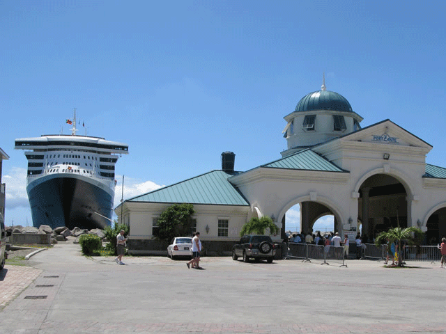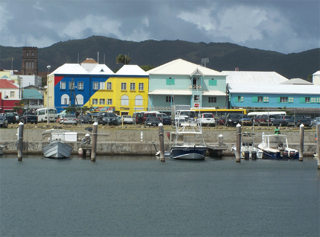 Reggel jó negyed széllel végigjöttünk St. Kitts partjai előtt egészen Basseterre-ig, ennek kikötője Port Zante. Szerencsére volt egy üres hely a baloldalon, orral álltunk a partnak, farral bóján. Volt egy kis gubanc, a hajócsavarral feltekertük a bójához menő kötelet, de Zoli vízbe vetette magát és letekerte.