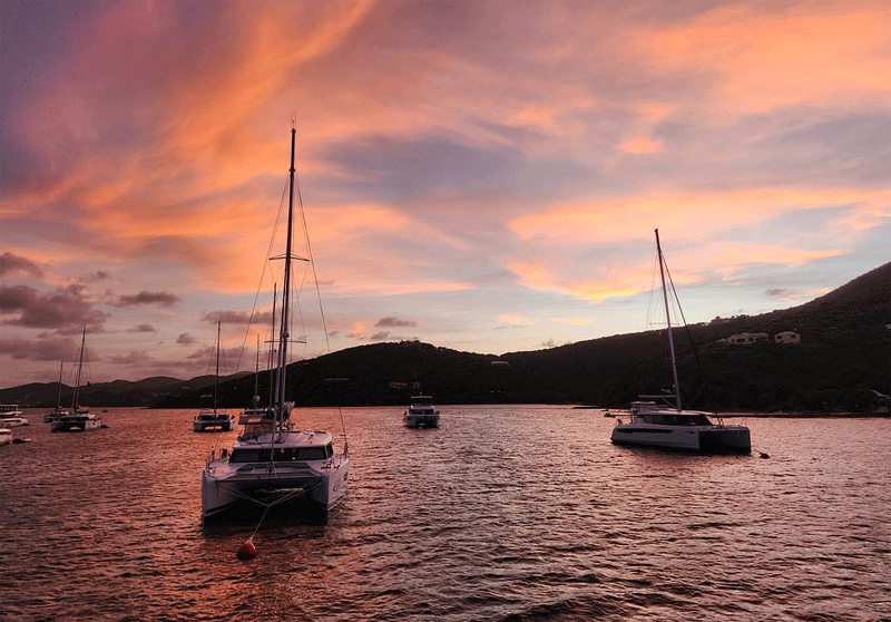 Hajnalban, teljes sötétségben indultunk BVI-felé, hosszú út van előttünk. Szikráztak a csillagok, a Göncöl is fent van csak éppen rúddal felfele, közel az egyenlítő. Sajnos a szél leállt, kénytelenek voltunk a motort beröffenteni, így is csak napnyugtakor értünk Virgin Gordára. St. Thomas Bay, Yacht Harbor.