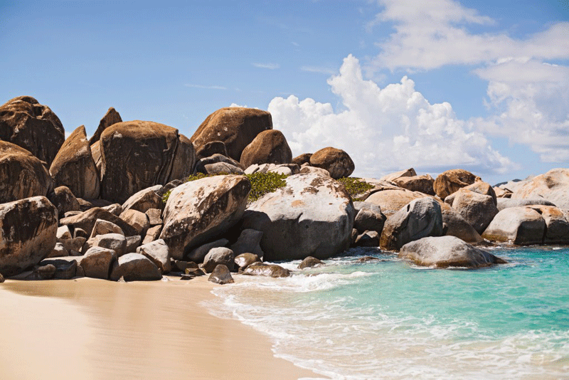 Virgin Gorda nevezetessége az egymásra dobált gránitsziklák, a The Baths. Sznorkellel úszkáltam a kövek között, csodás halacskák, korallok és tarisznyarákok hemzsegtek a vízben és a sziklafalon. A hatalmas gömbölyű kövek közti labirintusba akár el is lehet tévedni.