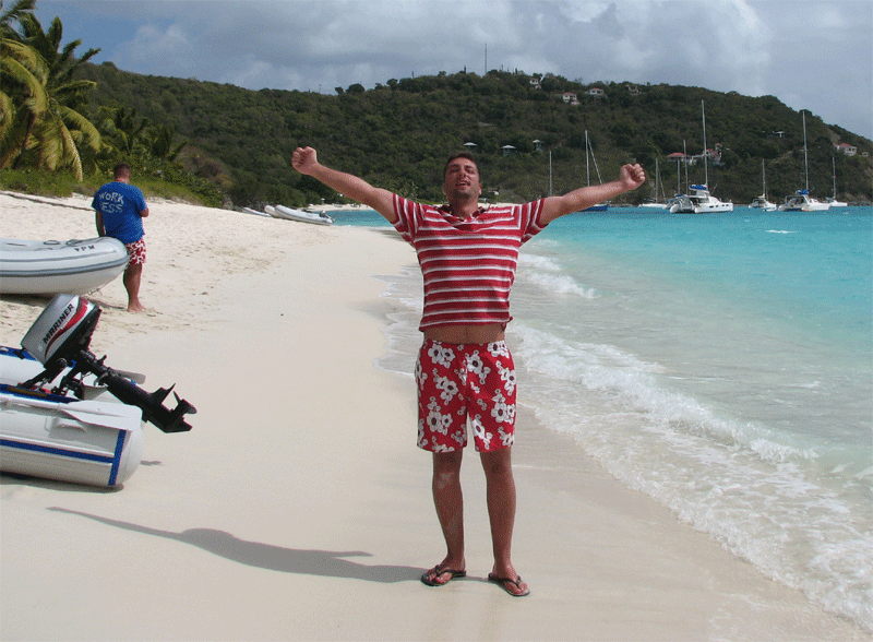 Egész éjjel erősen hullámzott, így hát átmentünk Jost van Dyke-re, a Little Harbour-ba, bójára kötöttünk, itt aztán nyugodtan megreggeliztünk. Az öböl túloldalán csinos házak, néhányuk már valőszínűleg turistákat is fogad. Reggeli után átkötöttünk Great Harbourba, fogyóban volt a sörkészlet, egy brigád kiment a partra beszerzési körútra, sajnos sikertelenül.