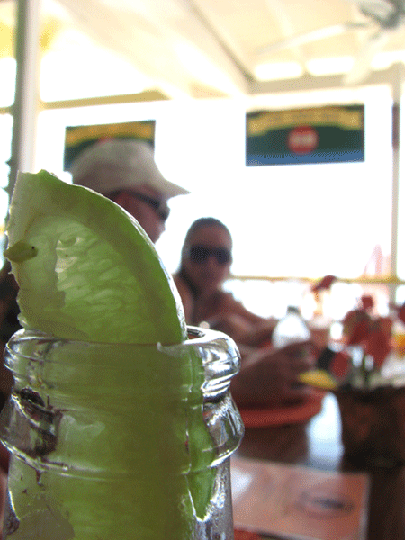 Behordtuk a csomagokat a hajóra, majd beestünk a parti kocsmába egy sörre, meg egy shooterre (ez egy rum alapú lórugás :-)