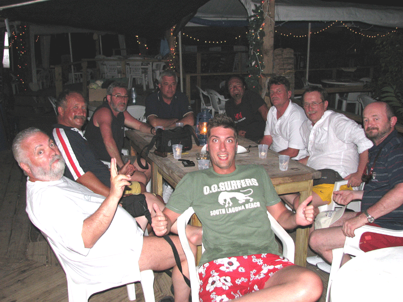Délután visszamentünk a hajóra és átmotoroztunk az iker-szigetre, Nevis-re, hol a Double Deuce nevű krimóval szemben, horgonyra álltunk. Az angol tulaj és benszülött felesége bűbájosak voltak, előitalként egy Bullshit nevű koktélt kaptunk (alapja rum , olyan mint a lórugás) mindenféle tengeri izéket vacsoráztunk, majd kifeküdtünk a parti homokra és bámultuk a csillagokat, a háttérben szóló karibi zene mellett. |