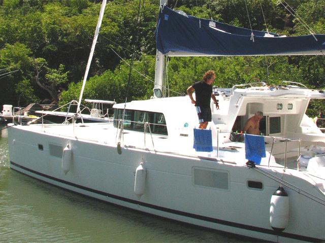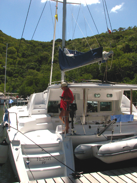 Két héttel korábban érkeztem a karibra és ugyanezzel a hajóval (Lagoon 440, neve Hestia) egyszer már megtettük az utat, körbe a Leeward (Szélalatti) szigeteken. Hárman maradtunk, a többiek tegnap haza- repültek. A charter-cég emberei nekiálltak kitakarítani a hajót, új ágyneműt húztak, ellenőrizték a motorokat és kijavították a klotyó lefolyót, mi meg Tibivel és Zsoltival elmentünk a szupermarketbe, felfrissíteni a készleteket. 5 hatalmas bevásárlókocsit pakoltunk tele és Joe, a helyi kapcsolatunk odafuvarozta a holmit a hajóra. Csak megjegyzem, mintegy 2000 USA-dollárt bokáztunk el.