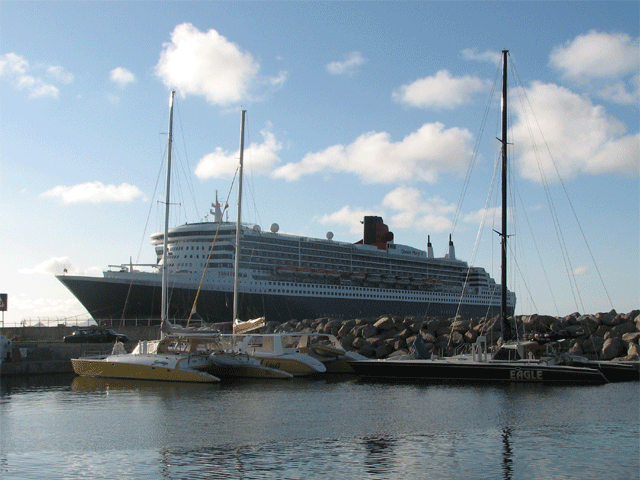 Reggel arra ébredtünk, hogy mellénk kötött a Queen Mary 2 :-) |