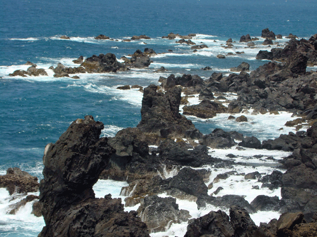 A sziget Atlanti-óceáni parján szép látványt nyújtottak az ún. Black Rocks vulkáni sziklái, félig a vízben, félig a parton.