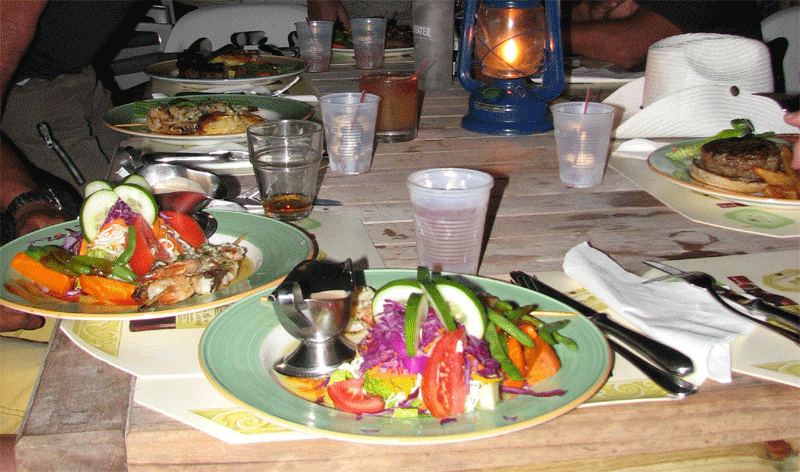 Miután összeszedelőzködtünk, testületileg kivonultunk Shirley's Height-re, ott volt az esti dühöngő. Egy parádés lobstert vacsoráltam néhány sörrel, ezután hazavonultam, kifeküdtem a deckre és az Oriont bámultam. A fiatalság meg kivonult a parti krimóba. |