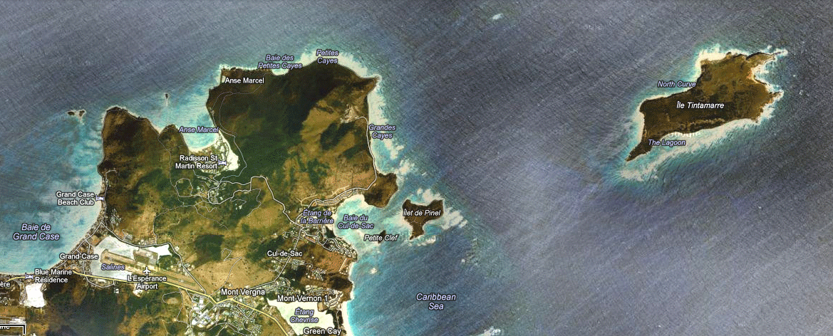 Tintamare (egyes térképeken Tintamarre), egy kis lakatlan sziget nem messze St. Martin északi csücskétől keletre. Természetvédelmi terület. A homokos tengerpartja viszont csodálatos, a vitorlások kedvelt horgonyzóhelye. Nevét a spanyolok adták, tinta mare a tenger csodás színére utal. |