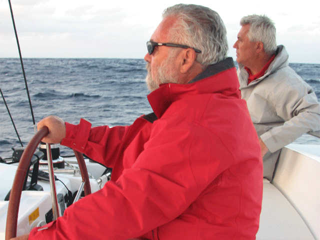 Dél lett mire összekaptuk magunkat és visszaindultunk Gustaviaba. Órás váltásokkal vittük a hajót, Tibi, Zsolti meg én. Majd 10 óra volt mire beértünk, késő estére, és horgonyt dobtunk a kikötő előtti öbölben. |