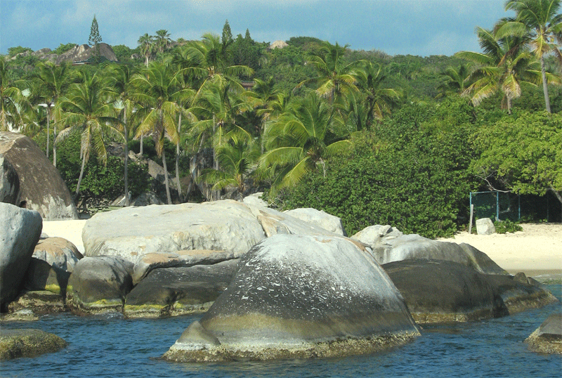 Virgin Gorda nevezetessége az egymásra dobált gránitsziklák, a The Baths. Sznorkellel úszkáltam a kövek között, csodás halacskák, korallok és tarisznyarákok hemzsegtek a vízben és a sziklafalon. A hatalmas gömbölyű kövek közti labirintusba akár el is lehet tévedni.