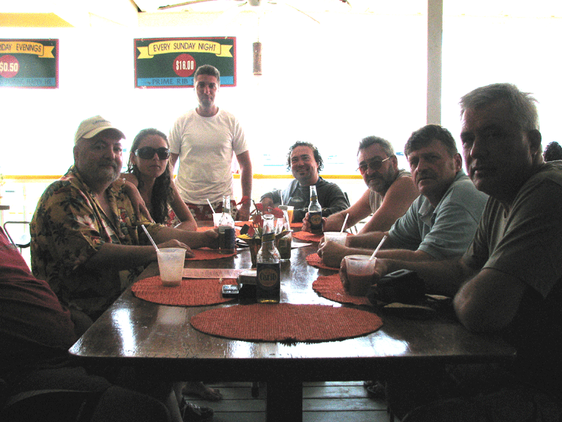 Behordtuk a csomagokat a hajóra, majd beestünk a parti kocsmába egy sörre, meg egy shooterre (ez egy rum alapú lórugás :-)