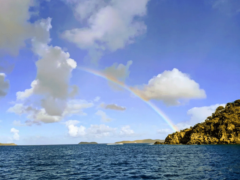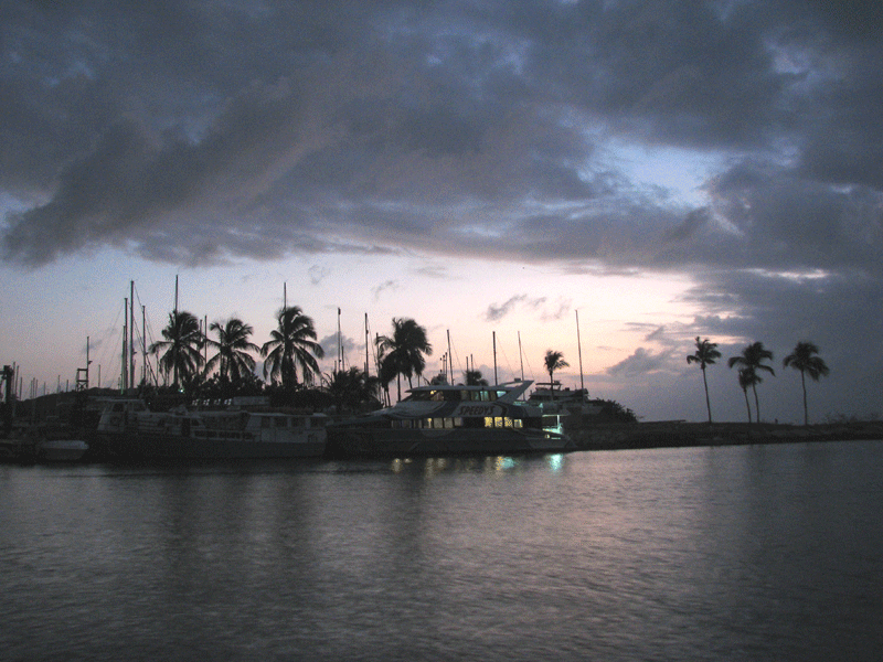 Hajnalban, teljes sötétségben indultunk BVI-felé, hosszú út van előttünk. Szikráztak a csillagok, a Göncöl is fent van csak éppen rúddal felfele, közel az egyenlítő. Sajnos a szél leállt, kénytelenek voltunk a motort beröffenteni, így is csak napnyugtakor értünk Virgin Gordára. St. Thomas Bay, Yacht Harbor.