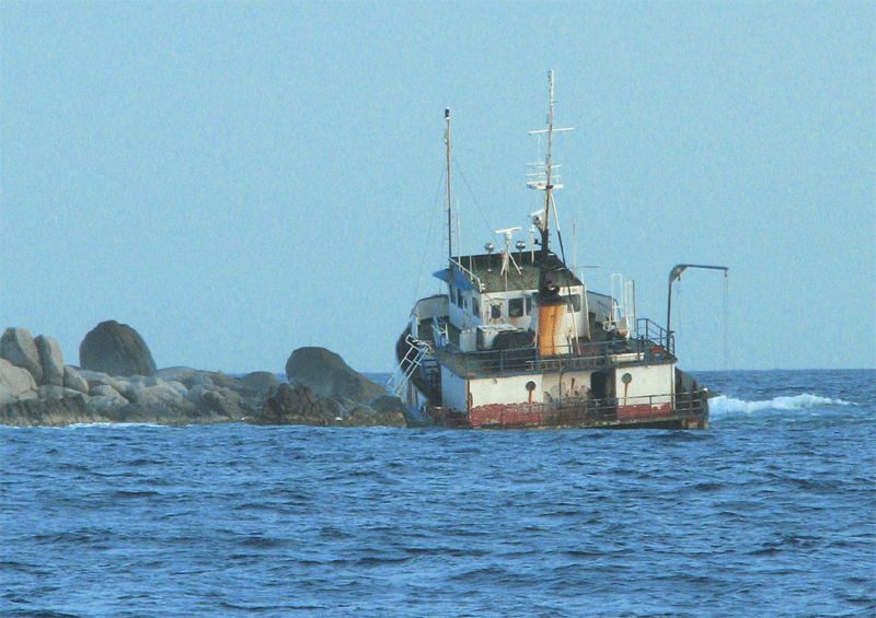 Útközben láttunk egy zátonyra futott halászhajót. A parton már várt minket Tibi kapitány, segitségével holnapra halasztottuk a belépési formaságok elintézését.