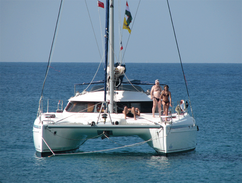 Hajóátvétel, leltár, adminisztráció, miközben óránként zuhogott egy-egy gyors eső. Miután végeztünk, átmentünk egy szemben lévő kis lakatlan szigetre, Tintamare-re egy kis pancsikálásra. Ott derült ki, hogy nem múködik a horgonyfelhúzó motor, így hát visszatértünk a bázisra. Ott meg az egyik motor is el kezdett nyöszörögni, kész szerencse, hogy mindez még az út elején kiderült. A horgonyfelhúzót megjavították, de a motorjavítás holnapra maradt. Rékus örült, mert a parti kapcsolat meghívta este bulizni.