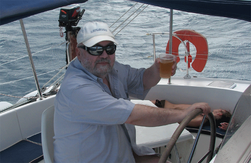 A szokásos reggeli cihelődés után irány Tortola. ÉK felé haladva 3/4 széllel kereszteztük a Francis Drake csatornát egészen a Great Camanoe sziget északi csücskéig, itt halzoltunk egyet és egészen a célkikötő, Cane Garden Bay magasságáig, egyvégtében jobbcsapáson mentünk. Innen már csak egy félszeles ugrás volt a kikötő. A kötelező társulati sörözés a parton. Karibi szokás: a sörösüvegbe egy negyed citromot vagy lime-ot dugnak, azon át kell inni.