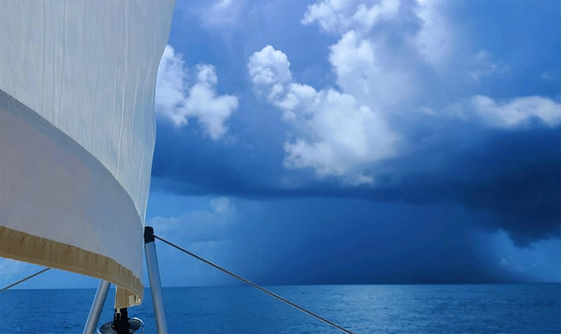 Végig a Sir Francis Drake Channel-en hajóztunk nyugat fele. Megkerültük a Mosquito Island-et, majd elhajóztunk a Dog Island mellett, amikor elért minket egy rendes vihar, grósz nélkül, reffelt génuával haladtunk, a végén már csak másfél négyzetméter vászon volt fent, így is 5 csomóval mentünk.
